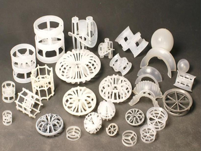 鮑爾環(Pall ring)是在拉西環的壁上開一兩層窗口而成,上下兩層窗孔錯開排列。開孔切開的窗葉片一邊與環壁母體相連,另一邊彎向環內,在環中心幾乎對接,上下兩層葉片的彎曲方向相反。由于開孔,溝通了環內外表面和空間,使得液體和氣體均勻分布,因此,阻力、通量和傳質效率均比拉西環顯著改善。鮑爾環填料適用于二氧化碳脫氧塔、臭氣接觸反應塔等作為觸填料,